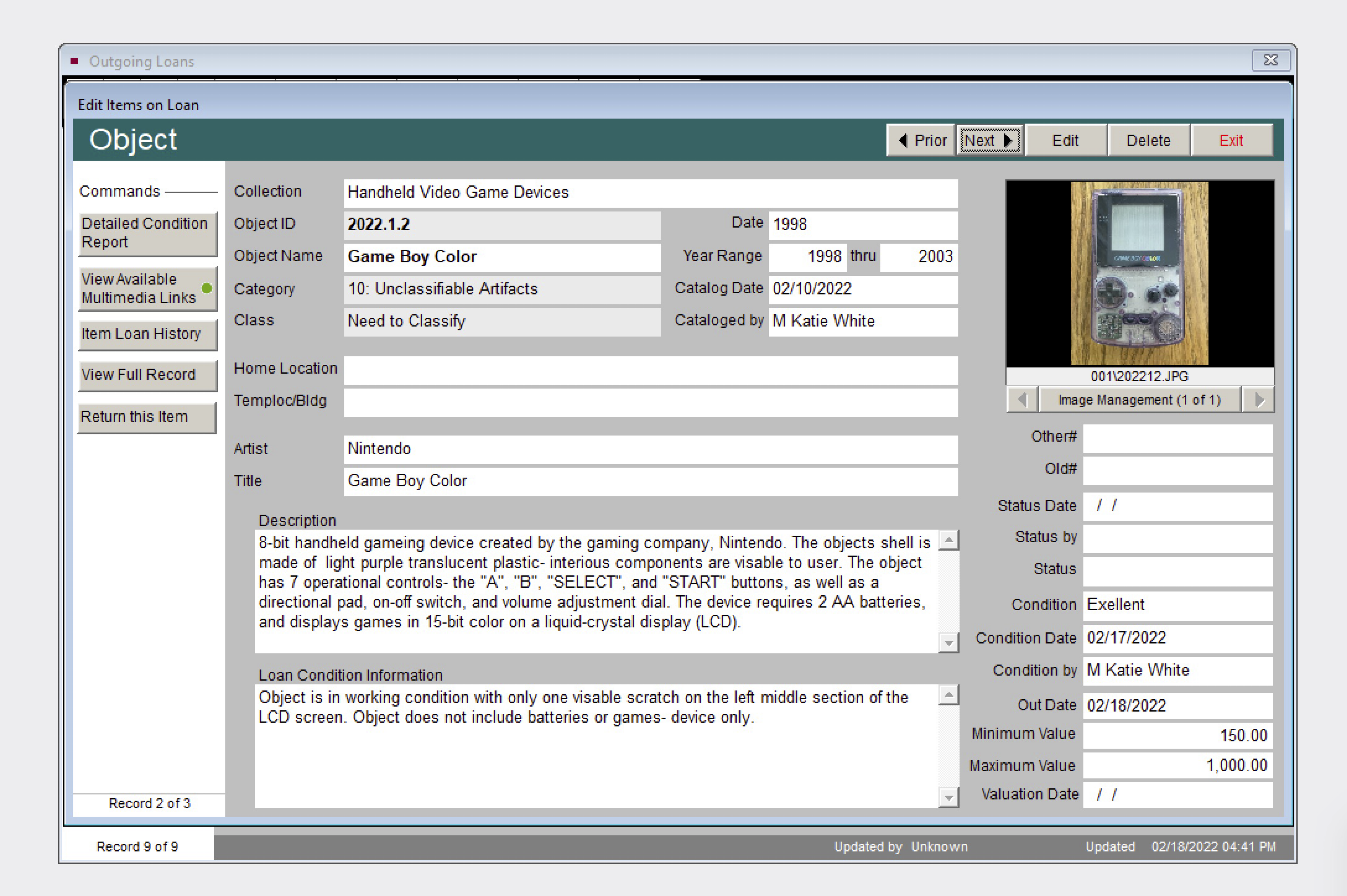 In this project we had to collect 30 object to create a museum collection. With those objects, we added them to a digital museum catalog and asses them in various ways throughout the semester. In this assignment I had to research specific items and add them and then added them into a collection I curated of handheld devices. Thus, this assignment met competencies of both collection planning and object research.